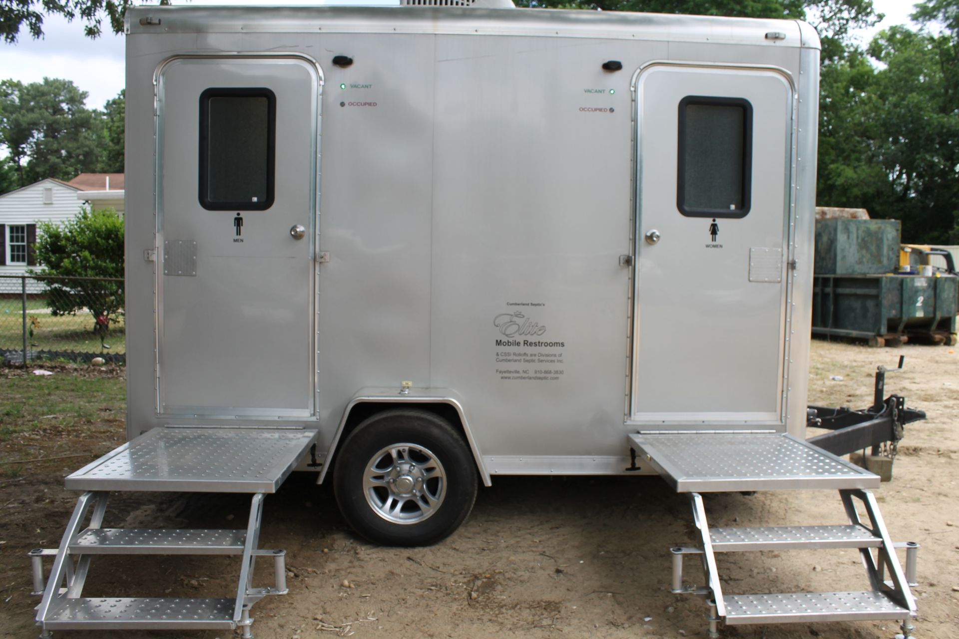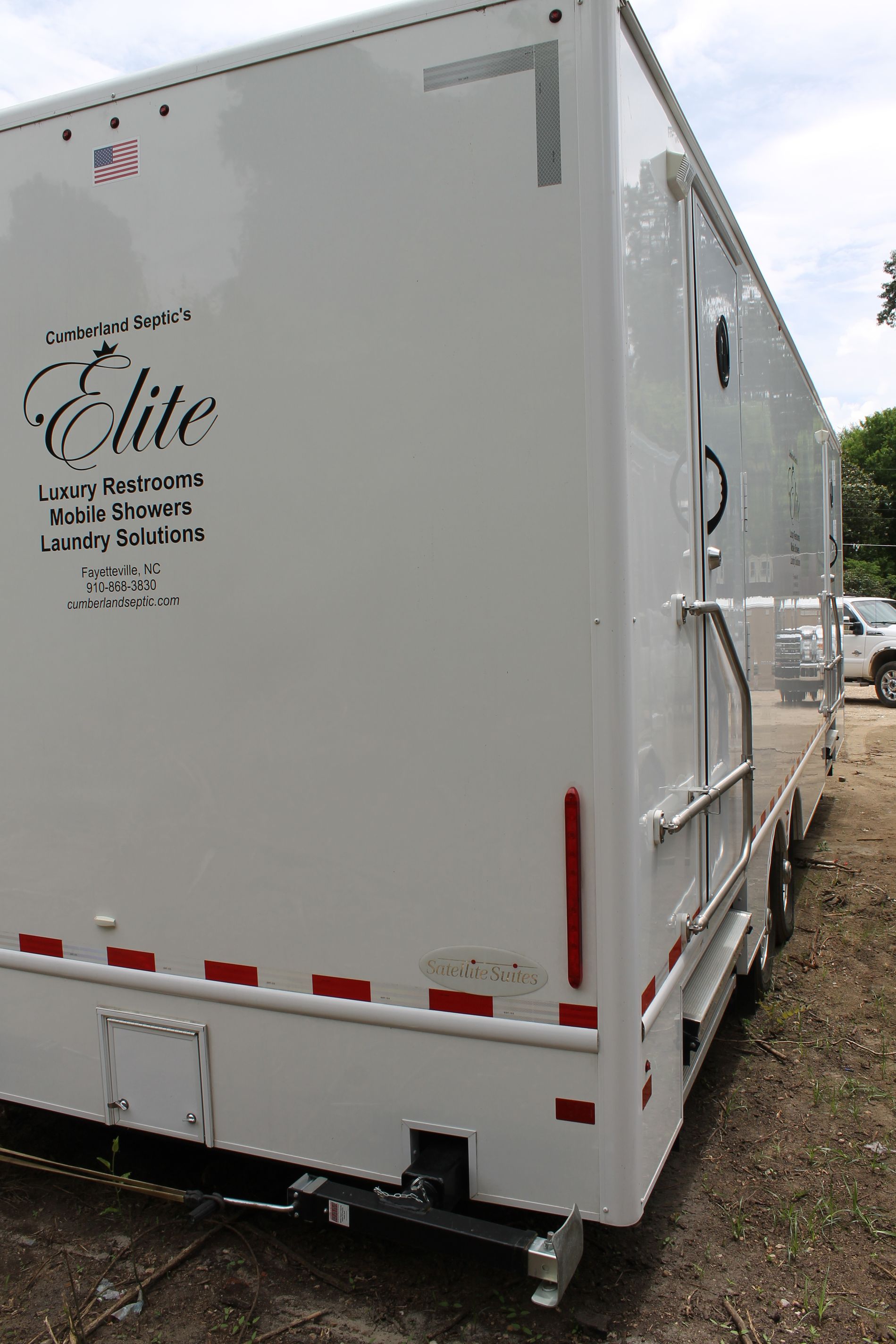 Elite Mobile Restrooms is a division of Cumberland Septic Services Inc. Our luxury restroom trailers provide a white-glove experience unlike any other. With a soft interior design, HVAC temperature control, and freshwater functionality, it’s genuinely a spa-like experience. We are the premier provider of restroom trailer rentals in Cumberland County, NC. Call 910-868-3830 today for pricing and booking details.